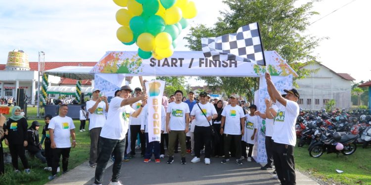 Sekretaris Daerah (Sekda) Aceh Barat, Marhaban SE, mewakili Pj Bupati Azwardi, secara resmi melepas peserta jalan santai yang turut meramaikan acara.
