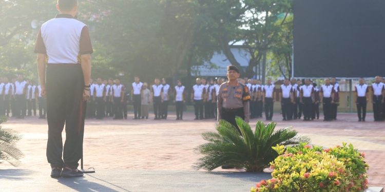 Personel kepolisian mengikuti apel pagi di lapangan Mapolda Aceh. Foto: dok Humas Polda Aceh