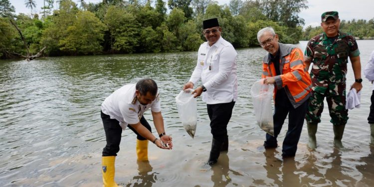 Dukung Pertambangan Berwawasan lingkungan, Pj Gubernur Aceh Lepas Ikan Kakap dan Tanam Bibit Pohon