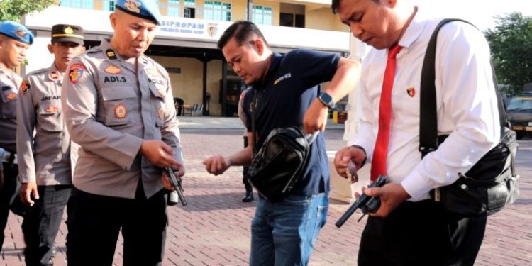 BANDA ACEH | BARATNEWS.CO – Polresta Banda Aceh, melakukan pemeriksaan terhadap senjata api (senpi) dinas dan amunisi yang digunakan oleh personel. Dalam pemeriksaan, terdapat 49 pucuk senpi ditarik untuk digudangkan.