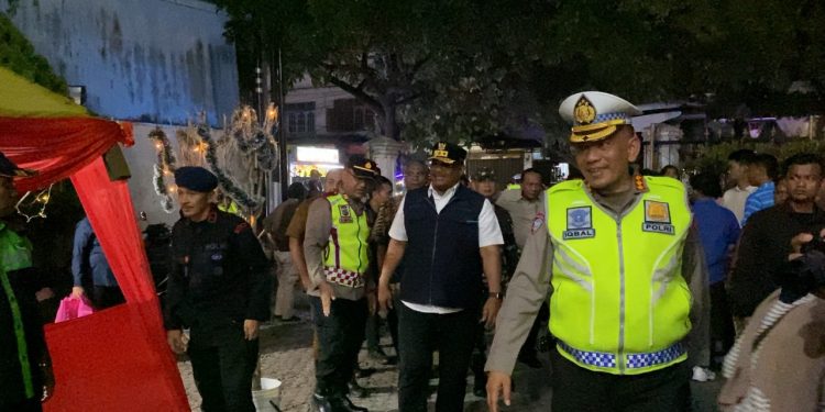BANDA ACEH | BARATNEWS.CO – Irwasda Polda Aceh, Kombes Djoko Susilo, bersama Penjabat Gubernur, Safrizal dan jajaran Forum Koordinasi Pimpinan Daerah (Forkopimda) melakukan peninjauan langsung pengamanan sejumlah gereja di Kota Banda Aceh, Selasa (24/12/2024) malam.