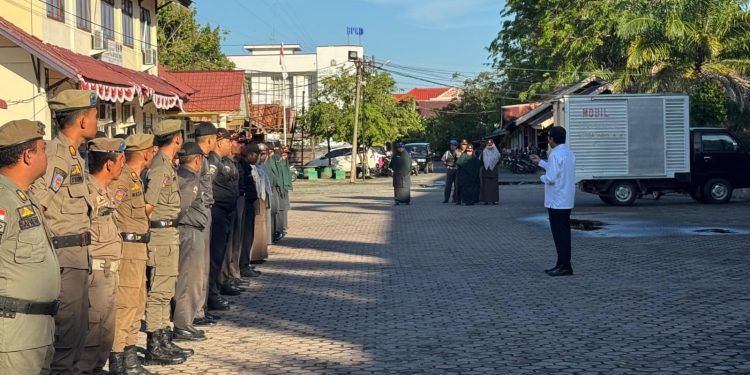 MEULABOH | BARATNEWS.CO – Penjabat (Pj) Bupati Aceh Barat, Azwardi, memimpin apel kesiapsiagaan Satpol PP dan Wilayatul Hisbah (WH) di halaman belakang Kantor Bupati Aceh Barat, Jumat (31/1/2025).