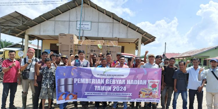 MEULABOH | BARATNEWS.CO – PT Prima Agro Aceh Lestari (PAAL) memberikan apresiasi kepada puluhan karyawannya atas kinerja terbaik berupa reward barang elektronik dan sembako. Hadiah diberikan itu, antaranya televisi dan kulkas sebanyak 62 unit total keseluruhan.