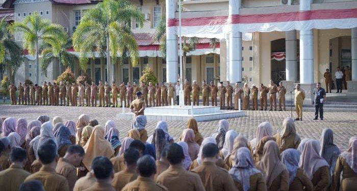 Apel yang diikuti oleh Sekretaris Daerah (Sekda), para asisten Sekda, staf ahli bupati, para Kepala Satuan Kerja Perangkat Kabupaten (SKPK), seluruh ASN dan THL ini berlangsung di Halaman Kantor Bupati Nagan Raya, Senin (24/2/2025).