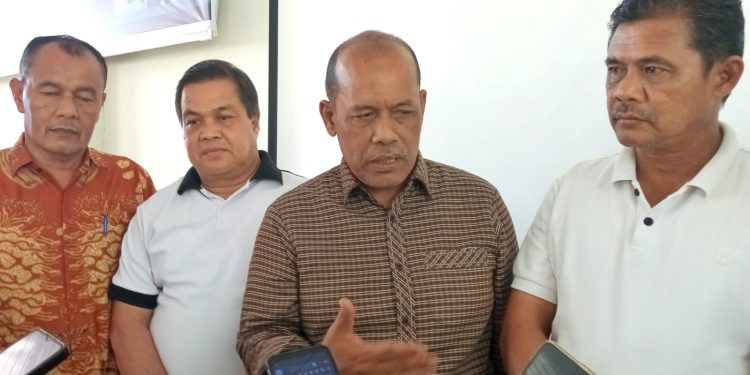 Dinas Koperasi UKM Aceh Azhari (tengah) didampingi Plt Kepala Disperindagkop UKM Aceh Barat Husensah (kanan) saat memberikan keterangan kepada sejumlah wartawan. Foto: Baratnews.co