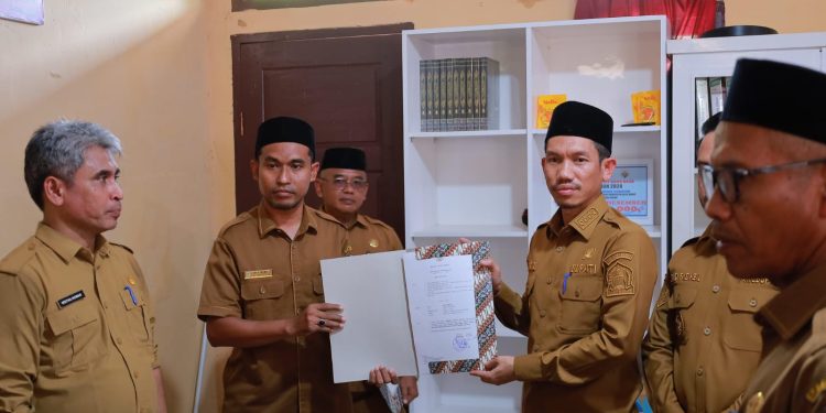 MEULABOH | BARATNEWS.CO – Bupati Aceh Barat Tarmizi, didampingi Wakil Bupati Said Fadheil, menyerahkan Surat Keputusan (SK) Pelaksana Tugas (Plt) kepada dua pejabat baru di lingkup Pemerintah Kabupaten Aceh Barat, Senin (5/5/2025) di Desa Simpang Teumarom, Kecamatan Woyla Barat.