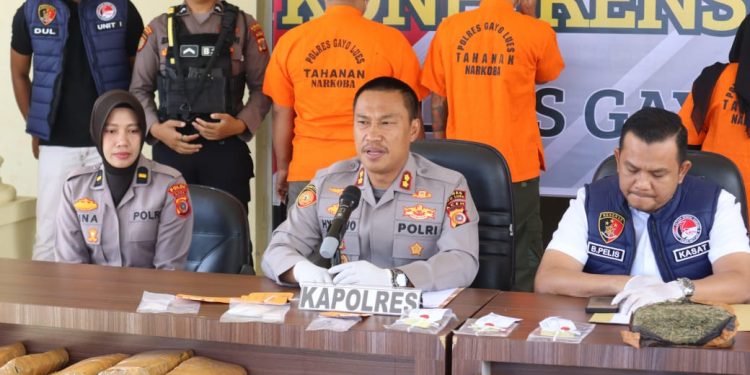 Konferensi pers pengungkapan kasus narkotika di Mapolres Gayo Lues. Foto: dok. kepolisian