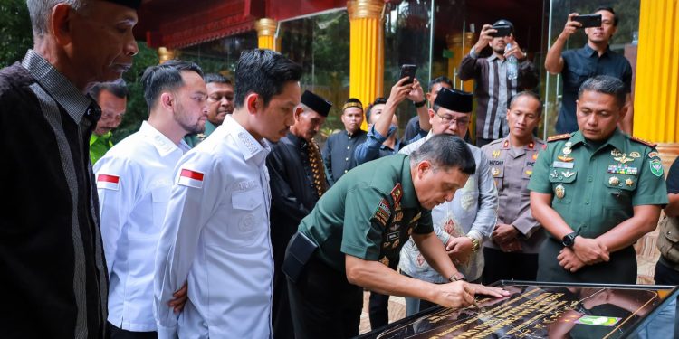 MEULABOH | BARATNEWS.CO – Panglima Kodam Iskandar Muda, Mayjen TNI Niko Fahrizal, meresmikan renovasi dan pembangunan fasilitas di kompleks makam Pahlawan Nasional Teuku Umar yang terletak di Desa Mugo Rayeuk, Kabupaten Aceh Barat, Sabtu (17/5/2025).