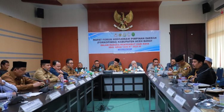MEULABOH | BARATNEWS.CO – Dalam rangka menyambut Hari Raya Idul Adha 1446 H/2025 M, Pemerintah Kabupaten Aceh Barat menggelar Rapat Koordinasi Pimpinan Daerah (Rakorpimda) pada Senin (26/5/2025) di aula cut nyak dhien kantor Bupati.
