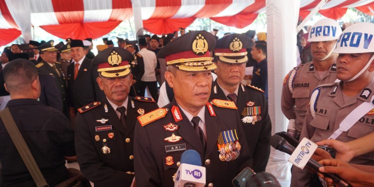 Wakapolda Aceh, Brigjen Pol Ari Wahyu Widodo, saat diwawancara sejumlah wartawan usai upacara. Foto: Dok. Humas Polda Aceh