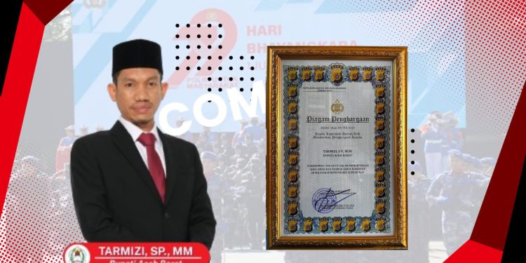 BANDA ACEH | BARATNEWS.CO – Kepala Kepolisian Daerah (Polda) Aceh menganugerahkan penghargaan kepada Bupati Aceh Barat, Tarmizi SP MM, sebagai unsur Forkopimda teraktif dalam menciptakan situasi kondusif di wilayah hukum Polres Aceh Barat.