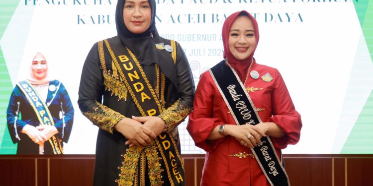 BANDA ACEH | BARATNEWS.CO – Bunda PAUD Aceh Marlina Muzakir mengukuhkan Ratna Sari Dewi sebagai Bunda Pendidikan Anak Usia Dini (PAUD) dan Ketua Forum Peningkatan Konsumsi Ikan (Forikan) Kabupaten Aceh Barat Daya (Abdya) Periode 2025-2030, Kamis (17/7/2025).
