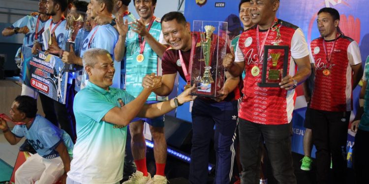 MEULABOH | BARATNEWS.CO — Wakapolda Aceh, Brigjen Ari Wahyu Widodo, secara resmi menutup Kejuaraan Badminton Kapolda Aceh Cup 2025 di Gedung Olahraga (GOR) KONI Aceh, Minggu malam, 27 Juli 2025. Penutupan turnamen ditandai dengan laga final ganda veteran beregu 98 yang menjadi penentu gelar juara.