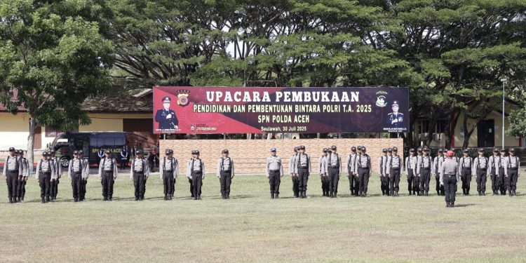 BANDA ACEH | BARATNEWS.CO – Wakapolda Aceh Brigjen Pol Ari Wahyu Widodo memimpin upacara pembukaan Pendidikan Pembentukan Bintara (Diktukba) Polri Tahun Anggaran 2025–2026 di Sekolah Polisi Negara (SPN) Seulawah, Kabupaten Aceh Besar, Rabu (30/7/ 2025).