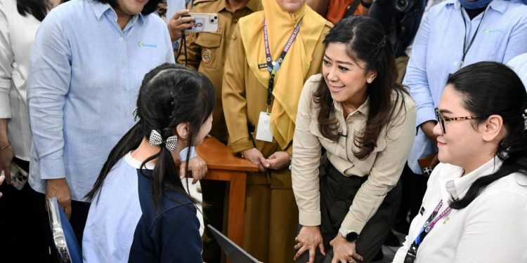 Menteri Komdigi, Meutya Hafid saat mengunjungi anak sekolah. Foto: Komdigi