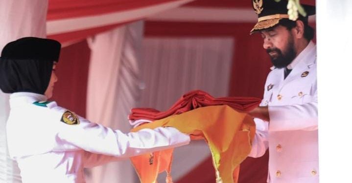 Mualem saat memimpin upacara peringatan HUT RI ke-80. Foto: Ist
