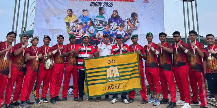 BANDA ACEH | BARATNEWS.CO – Prestasi membanggakan kembali ditorehkan personel Polda Aceh. Dua anggota kepolisian, Briptu Leo Firman dan Bripda Muhibbuth Thabari, berhasil meraih medali perak bersama tim rugby putra Aceh pada Kejuaraan Nasional (Kejurnas) Rugby di Lapangan Kenari, Yogyakarta, 22–24 Agustus 2025.