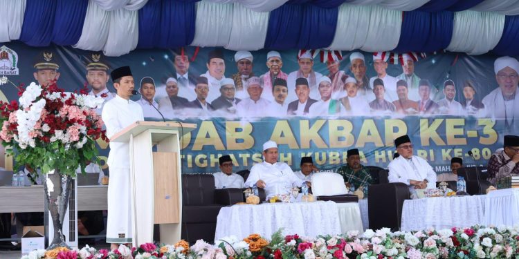 MEULABOH | BARATNEWS.CO – Bupati Aceh Barat, Tarmizi SP, MM, menghadiri Mubahatsah Ulama Dayah (MUDAB) Akbar dan Istighatsah Kubra dalam rangka peringatan HUT Kemerdekaan Republik Indonesia ke-80, yang digelar di Dayah Ruhul Qurani Islamic Boarding School, Desa Leuhan, Kecamatan Johan Pahlawan, Sabtu (23/8/2025).
