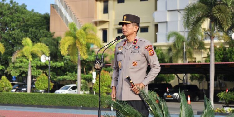 BANDA ACEH | BARATNEWS.CO – Kapolda Aceh, Brigjen Pol Drs. Marzuki Ali Basyah, memimpin apel perdana setelah resmi menjabat di Lapangan Polda Aceh, Senin (25/8/2025).