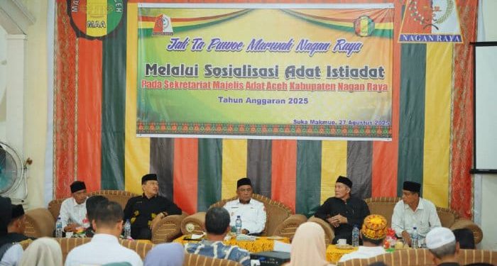 SUKA MAKMUE | BARATNEWS.CO — Wakil Bupati (Wabup) Nagan Raya, Raja Sayang, secara resmi membuka kegiatan Sosialisasi Adat Istiadat Kabupaten Nagan Raya Tahun 2025 yang digelar oleh Majelis Adat Aceh (MAA) Nagan Raya di kantor MAA, Gampong Jeuram, Kecamatan Seunagan, Rabu (27/8/2025).
