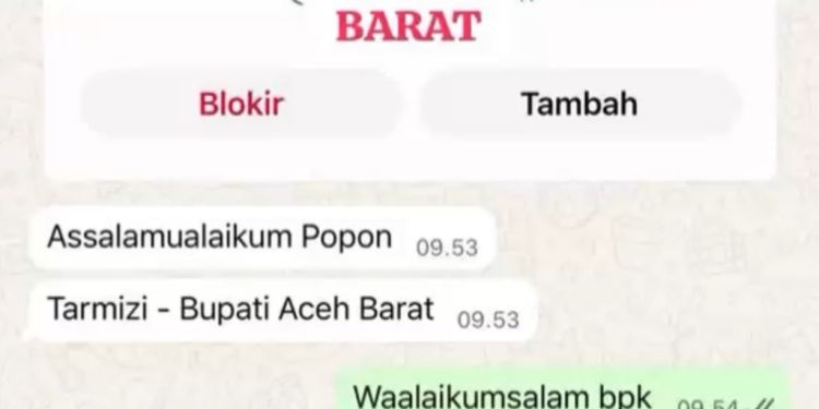 MEULABOH | BARATNEWS.CO – Warga Aceh Barat dihebohkan dengan beredarnya nomor telepon 082177772610 yang mengaku sebagai Bupati Aceh Barat, Tarmizi. Nomor tersebut diduga mencoba menipu masyarakat dengan meminta sejumlah uang.