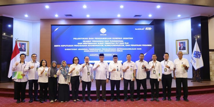 Dalam kesempatan itu, Kemnaker melantik sejumlah pejabat, di antaranya Pejabat Pengawas (Eselon IV) pada Direktorat Bina Kelembagaan K3 dan Direktorat Bina Pengujian K3, serta seorang Pejabat Fungsional Penguji K3 Ahli Muda.