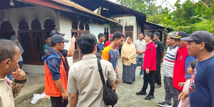 MEULABOH | BARATNEWS.CO – Bupati Aceh Barat, Tarmizi SP MM, menyerahkan bantuan masa panik kepada Laidi, warga Desa Padang Sikabu, Kecamatan XVI, yang rumahnya terbakar pada Minggu (14/9/2025) sekitar pukul 10.00 WIB.
