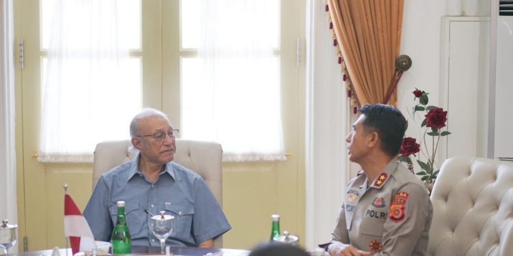 BANDA ACEH | BARATNEWS.CO — Kapolda Aceh Irjen Pol. Marzuki Ali Basyah bersama Wakapolda Brigjen Pol. Ari Wahyu Widodo bersilaturahmi dengan Wali Nanggroe Aceh, Paduka Yang Mulia Tgk. Malik Mahmud Al Haytar, di kediamannya, Lampenerut, Aceh Besar, Jumat (19/9/2025).