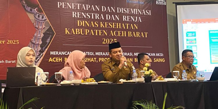 Penetapan dan diseminasi Renstra-Renja sekaligus workshop berlangsung di Parkside Meuligoe Hotel, Meulaboh, Senin (22/9/2025), dipimpin Kepala Dinas Kesehatan Aceh Barat, Cut Hasanuddin, dan dibuka oleh Bupati Aceh Barat yang diwakili Asisten Pemerintahan dan Keistimewaan Aceh, Irfan Murdani.