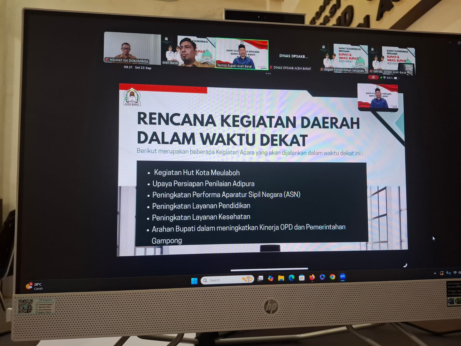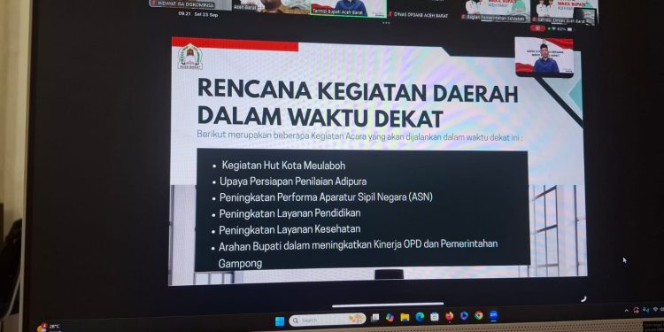 MEULABOH | BARATNEWS.CO – Bupati Aceh Barat, Tarmizi SP MM bersama Wakil Bupati Said Fadheil SH, memimpin rapat koordinasi (Rakor) dengan seluruh Satuan Kerja Perangkat Kabupaten (SKPK), camat, dan kepala desa secara virtual. Salah satu agenda utama adalah persiapan peringatan Hari Ulang Tahun (HUT) kota Meulaboh.