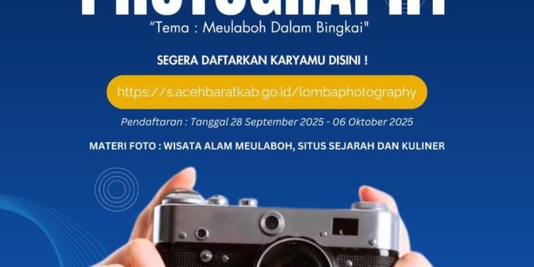 MEULABOH | BARATNEWS.CO – Dalam rangka menyambut Hari Ulang Tahun (HUT) Meulaboh ke-437, Dinas Komunikasi, Informatika dan Persandian (Diskominsa) Aceh Barat menggelar Lomba Fotografi bertema “Meulaboh dalam Bingkai”.