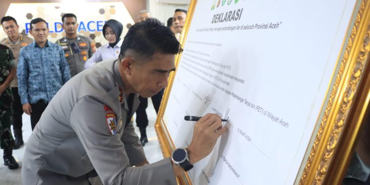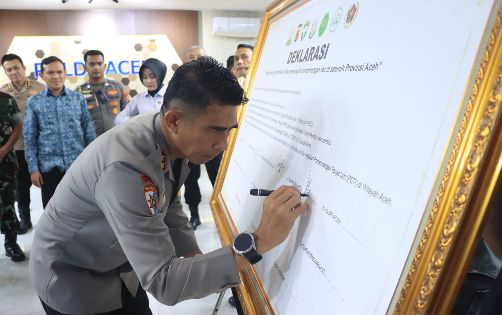 Dalam deklarasi yang turut dihadiri Wakil Gubernur Aceh, Fadhlullah, dilakukan penandatanganan komitmen bersama untuk menolak segala bentuk PETI.