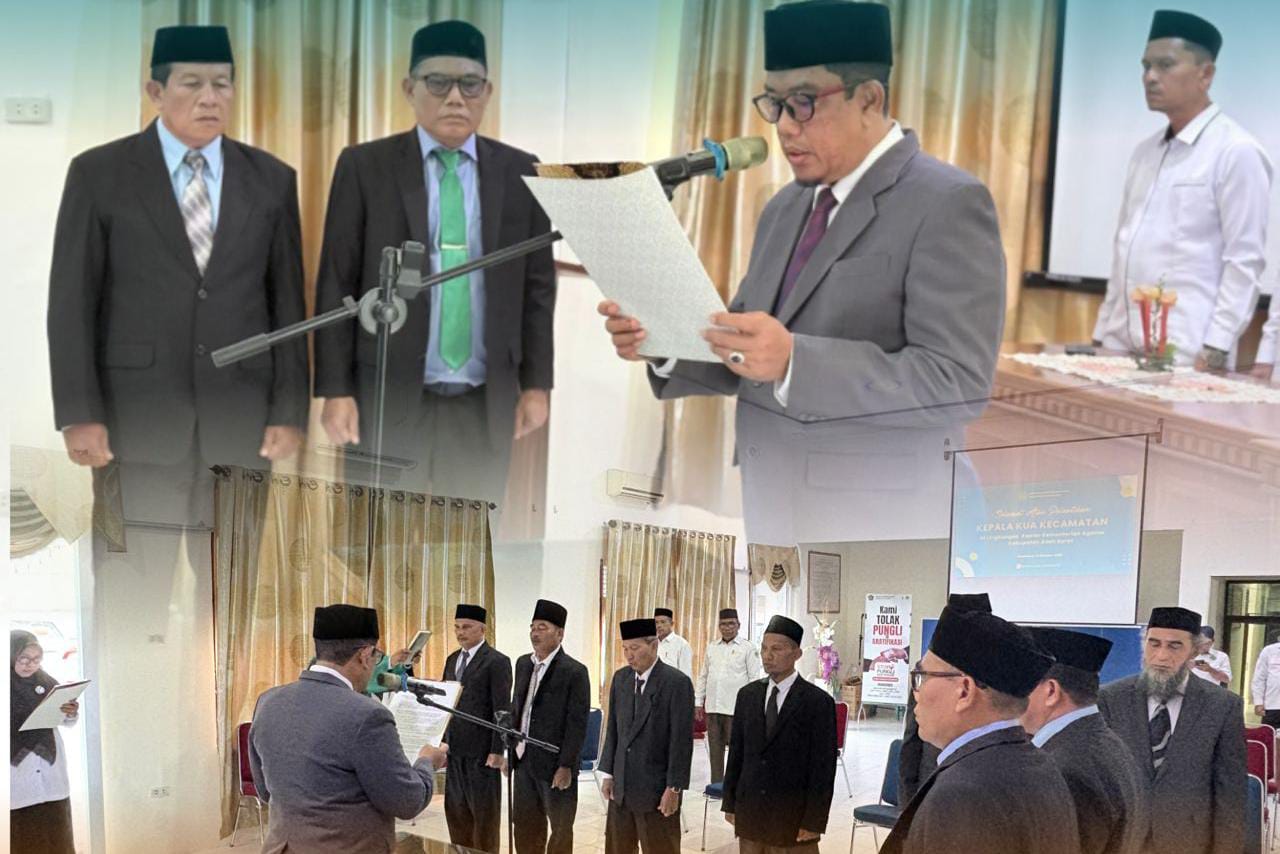 MEULABOH | BARATNEWS.CO — Kepala Kantor Kementerian Agama (Kakankemenag) Kabupaten Aceh Barat, H. Abrar Zym, S.Ag., M.H., melantik dan mengambil sumpah enam Kepala Kantor Urusan Agama (KUA) Kecamatan di lingkungan Kemenag Aceh Barat.
