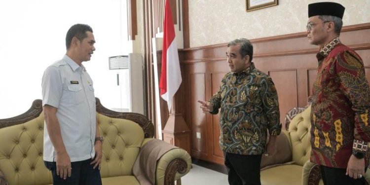 BANDA ACEH | BARATNEWS.CO — Sekretaris Daerah (Sekda) Aceh, M. Nasir, S.IP, MPA, mengantar kepulangan Ketua MPR RI, H. Ahmad Muzani, usai melakukan kunjungan kerja di Aceh. Prosesi pelepasan berlangsung di Bandara Internasional Sultan Iskandar Muda (SIM), Blang Bintang, Rabu (15/10/2025).