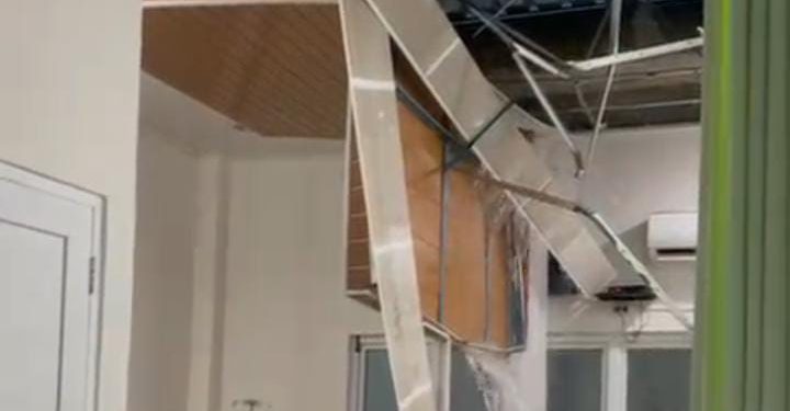 Informasi sementara menyebutkan, insiden itu terjadi akibat saluran pembuangan air di bagian atap yang tidak mampu menampung derasnya air hujan.