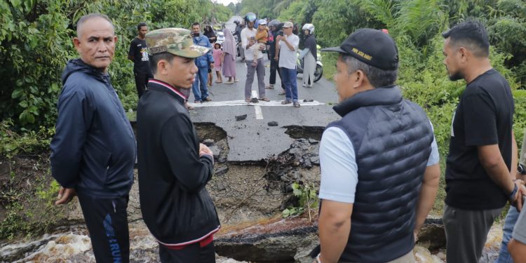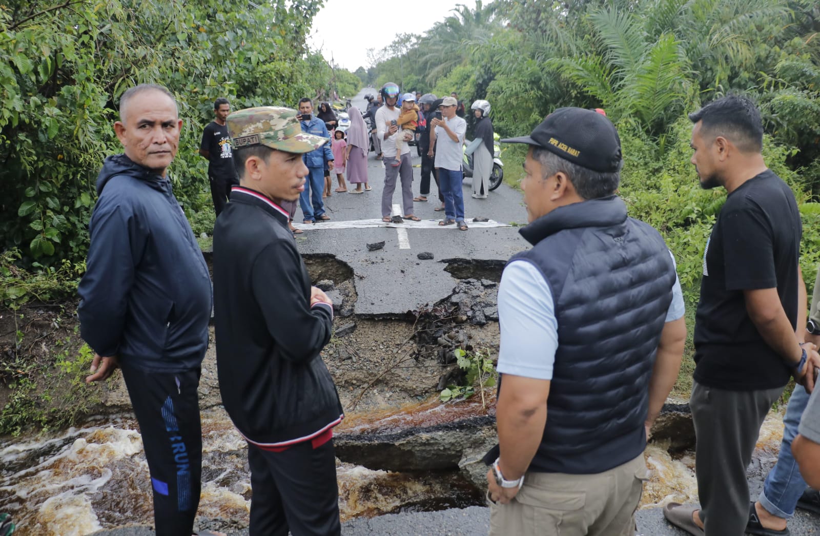 Dalam peninjauan tersebut, Bupati Tarmizi memastikan penanganan darurat dilakukan segera. “Hari ini kita tangani secara darurat menggunakan batang kelapa agar masyarakat bisa melintas. Ada dua titik, dan akan dikerjakan bersamaan,” ujarnya di lokasi.