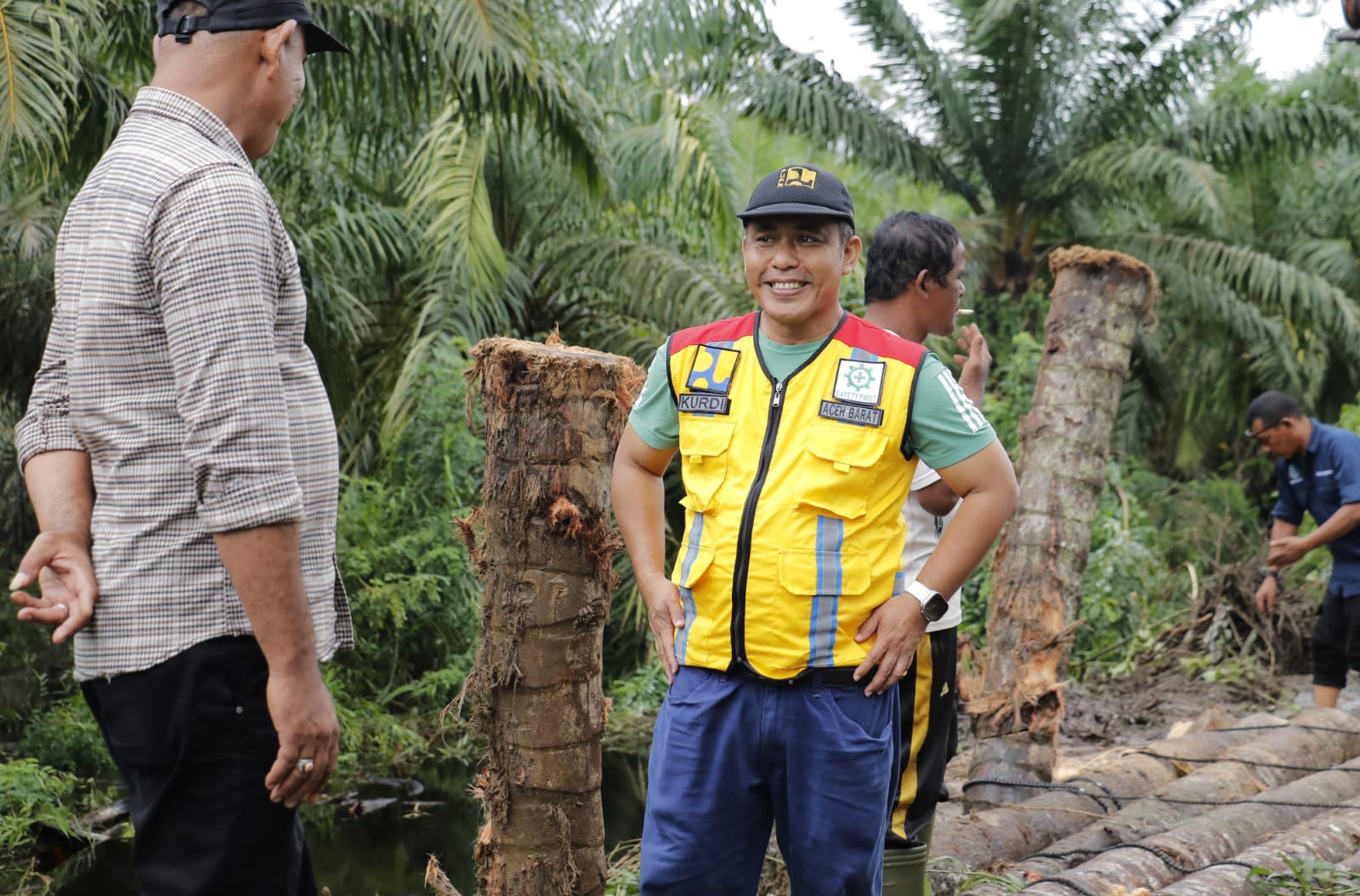 Bupati Aceh Barat melalui Kepala Dinas PUPR, Kurdi, mengatakan penanganan darurat menggunakan batang pohon kelapa rampung dilakukan pada Minggu sore (19/10/2025).