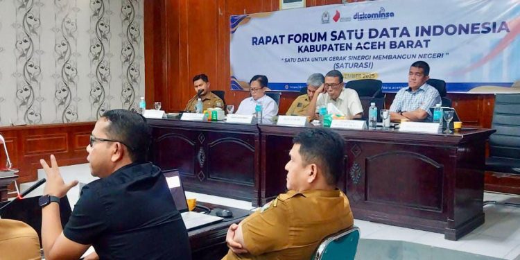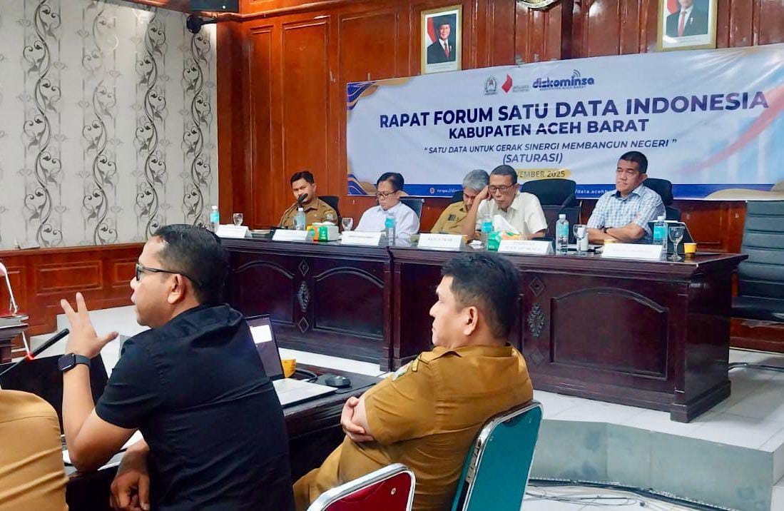 MEULABOH | BARATNEWS.CO — Pemerintah Kabupaten Aceh Barat terus memperkuat tata kelola data daerah melalui pelaksanaan Rapat Forum Satu Data Indonesia yang digelar Dinas Komunikasi, Informatika dan Persandian (Diskominsa) Aceh Barat di Aula Cut Nyak Dhien Bappeda, Selasa (4/11/2025).