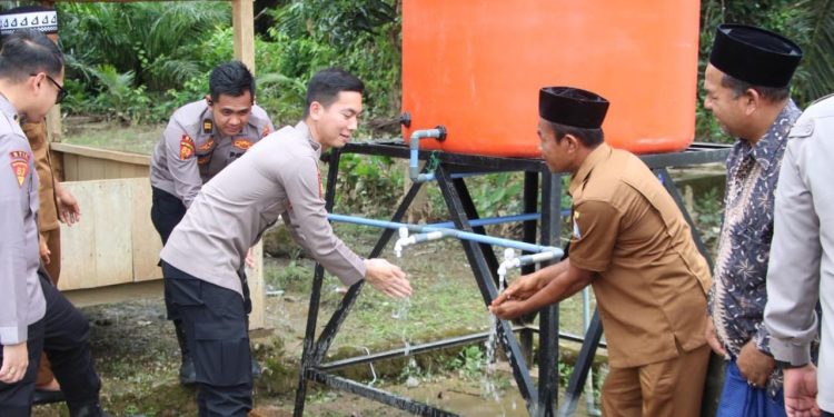 Fasilitas tersebut diresmikan Kapolres Aceh Barat Yhogi Hadisetiawan, Kamis (19/2/2026). Peresmian menandai dimulainya pemanfaatan sumur bor oleh warga setempat.