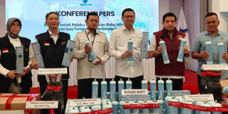 JAKARTA | BARATNEWS.CO – Badan Pengawas Obat dan Makanan bersama Kepolisian Negara Republik Indonesia mengambil langkah tegas terhadap peredaran ilegal gas dinitrogen monoksida (N₂O) yang dijual bebas secara daring dengan merek Baby Whip.