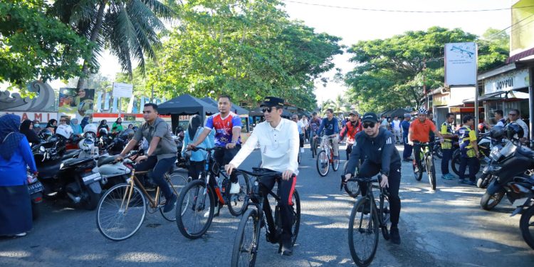 Bupati dan Wakil Bupati Aceh Barat beserta ASN gowes dan gotong royong. Foto: Ist