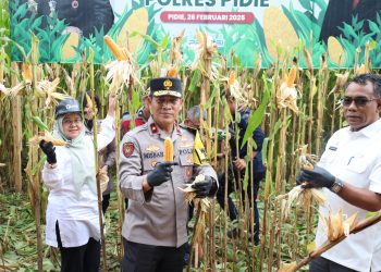 SIGLI | BARATNEWS.CO - Mewakili Kapolda Aceh, Wakapolda Aceh Brigjen Misbahul Munauwar melakukan panen raya jagung tahap pertama secara serentak...