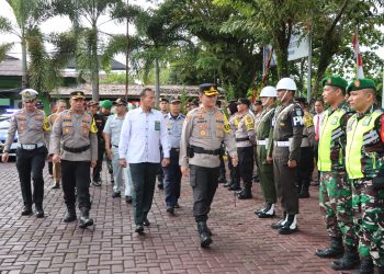 Kapolres Aceh Barat, AKBP Andi Kirana meninjau kesiapan pasukan dalam Apel Gelar Pasukan untuk Operasi Zebra Seulawah 2024 di Lapangan...
