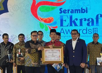 Bupati Aceh Barat, Tarmizi SP, MM, meraih penghargaan Serambi Ekraf Awards 2025 kategori Pelopor Pemanfaatan Eceng Gondok untuk Industri Kreatif.