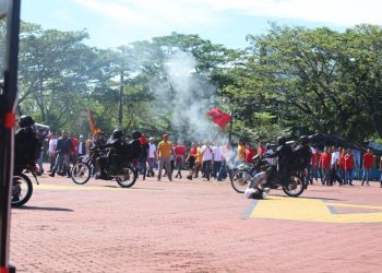 Massa yang bertindak anarkis, seperti melakukan pembakaran dan menyerang petugas, dihadapi dengan tindakan tegas dan terukur.