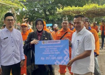 Wali Kota Banda Aceh Illiza Sa’aduddin Djamal, secara simbolis menyerahkan zakat miskin konsumtif bagi 562 pasukan orange ...